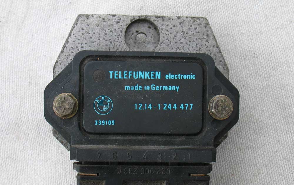 1) Existing models kept the twin 6V coils, but now they were 0.7 Ohms each. 12 13 1 244 143 with the lightning bolt sticker. This lasted through 1984, when they got upgraded to the single-coil system. The ICM had white or pink lettering with part number 12 14 1 244 477 [or just the molded Bosch part number 0 227 100 103 - unverified].