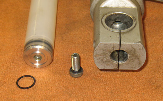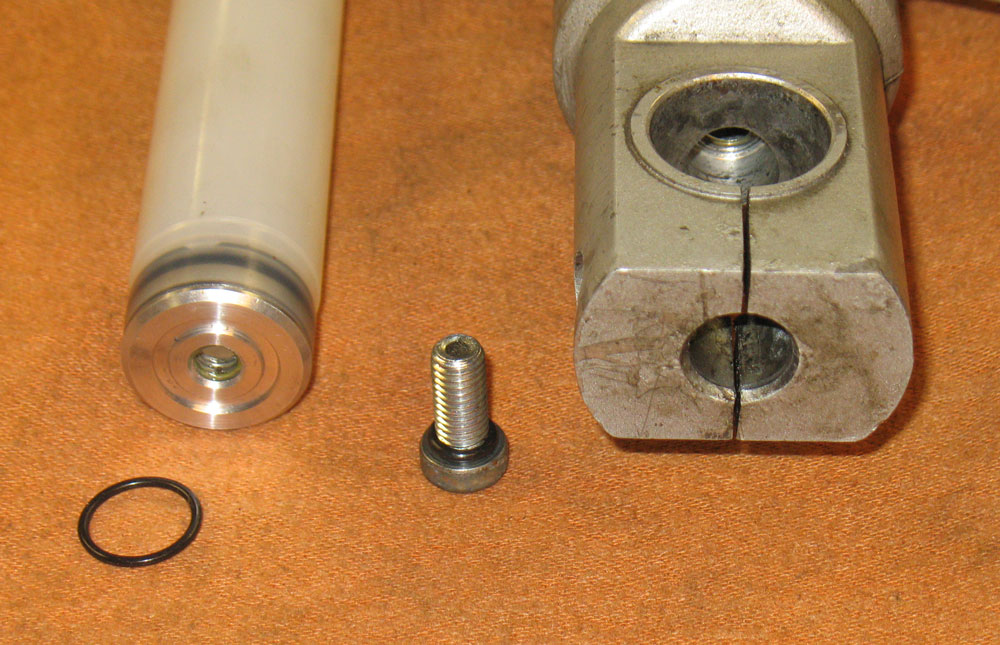 Reassembly was easier because I used crush washers instead of the O-ring. This meant that the bottom end cap locked itself to the slider as soon as the bolt tightened up. I also did not use thread sealant.