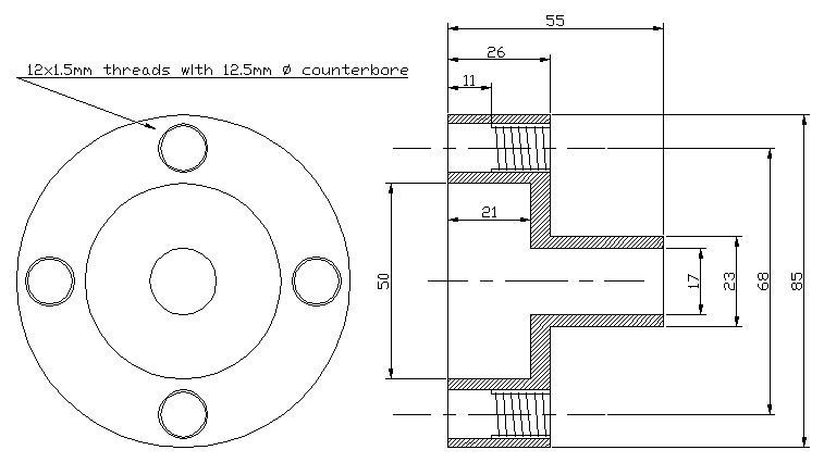 BMW wheel adapter 36 3 613 for 4-bolt wheels