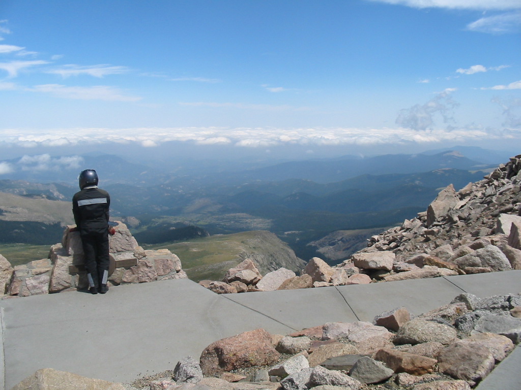 Saturday we headed out of town on Route 56, which is a really nice 2-lane that twists through the countryside and eventually has anice twisty section through Hocking Hills. From there we continued on to I-70 to Indianapolis, where we saw the hairiest H-D rider in the world (too bad I didn't get a picture!) and then picked up US36. Dinner in Jacksonville IN (hint: don't go there) and then for the remaining 700+ miles to Denver. Night fell and we couldn't stomach the thought of a $55+ motel room for only 8 hours, so we pitched the tent in a city park in Hannibal Missouri. Guerilla camping at its best! Sunday we hit the road, which was now nearly deserted. US36 is mostly 2-lane, and we went through more corn than you can imagine. As we got into Kansas, the terrain changed from corn to rangeland and back several times, becoming increasingly hot and dry as we got to the western part of the state. One interesting site was about 20 or 30 locomotives, seemingly abandoned on a siding in mid-Kansas. In Colorado it even got drier. By the time we got to the town of Anton, things were pretty parched and so were we, but the stores were closed and all there was available was a water faucet tasting of plastic. We hit the road again, with Denver only an hour away now, for the last blast into town. Around this point the Rockies started to come into view for the first time. We passed this neat-looking oasis town about 30 miles out of Denver, and got to Olivia's house about 6:00. |