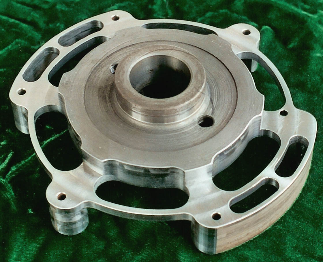 To the left are lightened flywheels by Crescent Precision and Cycle Works. To the right is an aluminum flywheel by Barrington Motor Works.