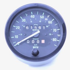 We'll start with the G/S speedometers, just for perspective and because they are physically interchangeable. In compliance with US law, the '81 and '82 G/S speedometers for the USA had the required 85MPH max and the emphasis on 55MPH.