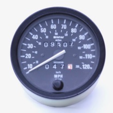 All speedometers are marked with a W number (Wegdrehzahl, literally "path turning count" but more practically the speedometer ratio or coefficient), which represents the number of turns of the cable needed to accrue one mile or kilometer. The W roughly corresponds with the final drive ratio, although this is not mathematically consistent across all bikes. For each of the speedometers listed below, the intended FD ratio and the W are given.
