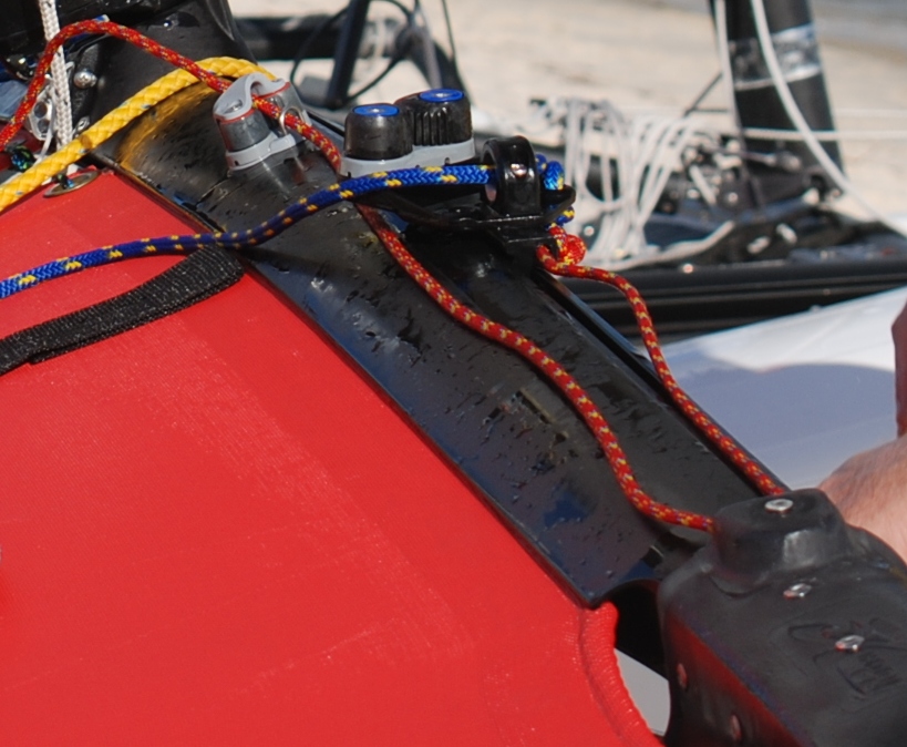 Note: current surface-mount main traveler track from Hobie is deep, to make use of the newer traveler car design.