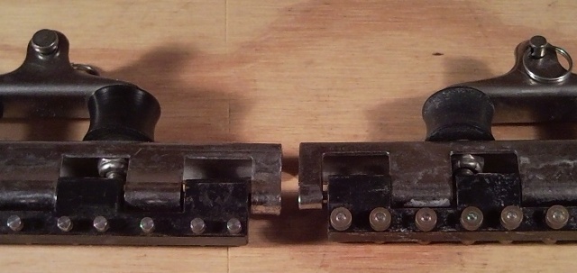 1Read the linked threads for details. The integrated track was introduced at some point in 1994 and the new corner castings weren't necessarily introduced on the same boat. Those tracks were too shallow so they were deepened for 1995 and the brass-wheeled main traveler car was introduced. I'm not sure what the jib car was for the shallow track; apparently it looked like the later one but must have had a thinner flange.