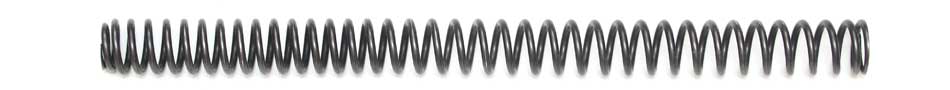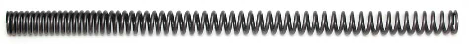 The stock springs are slightly progressive, about 445mm long with a slight diameter reduction at one end (should be at the bottom), and are used with 159mm spacers (169mm for the PD). A spacer/seat disc fits into the bottom of the spring on the rebound side. The forks have about 565mm fork space, so with the 159mm spacers there is about 40mm spring preload.